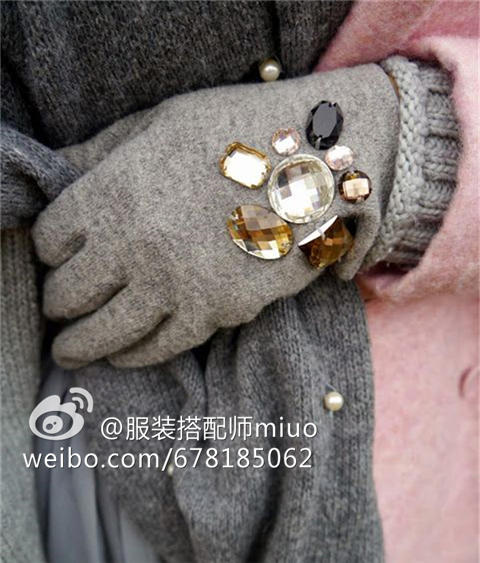 有时候自己也可以给手套来点DIY,钉点水钻或其他元素,这样纯色的手套也不会显得单调。而且还能增添精致感和细节感。