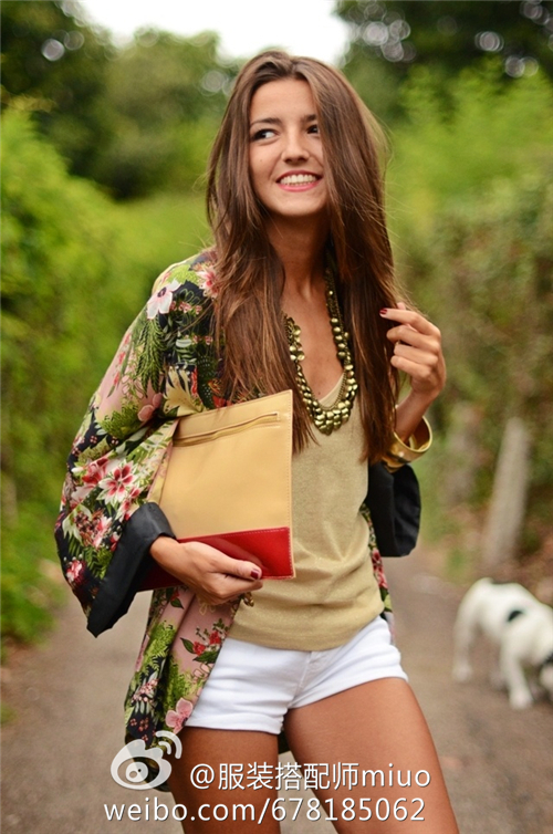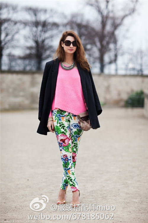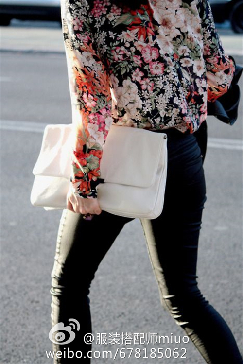 如果身上有一件大面积的花朵单品,那么其他的单品都最好是纯色。这样才不容易抢风头。