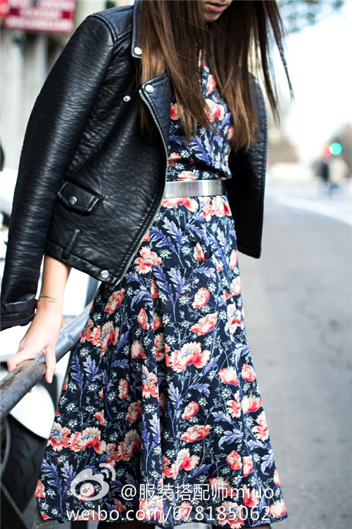 也可以让花朵图案和蕾丝等纹理面料的单品搭配 。也会得到意想不到的效果!