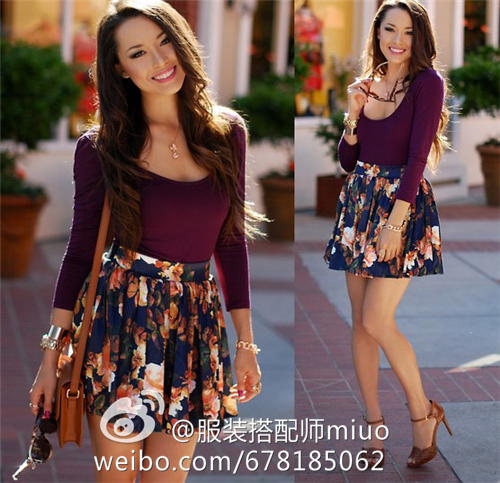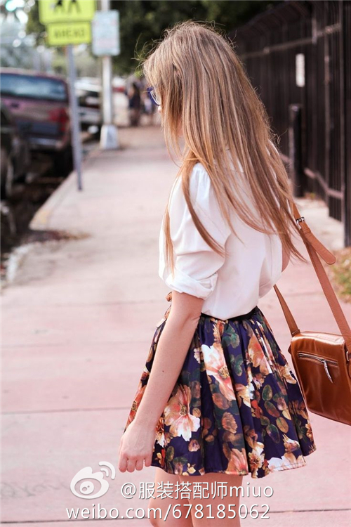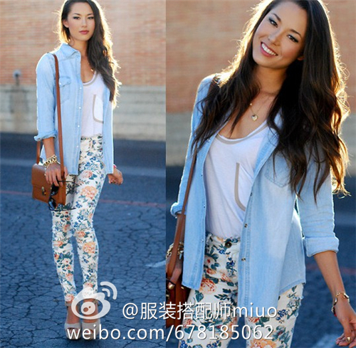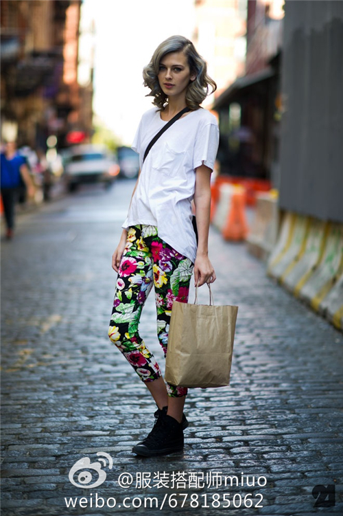 一般来说,如果穿了花柄的裙子或裤子,那么上半身可以搭配基础款基础色的衣服。