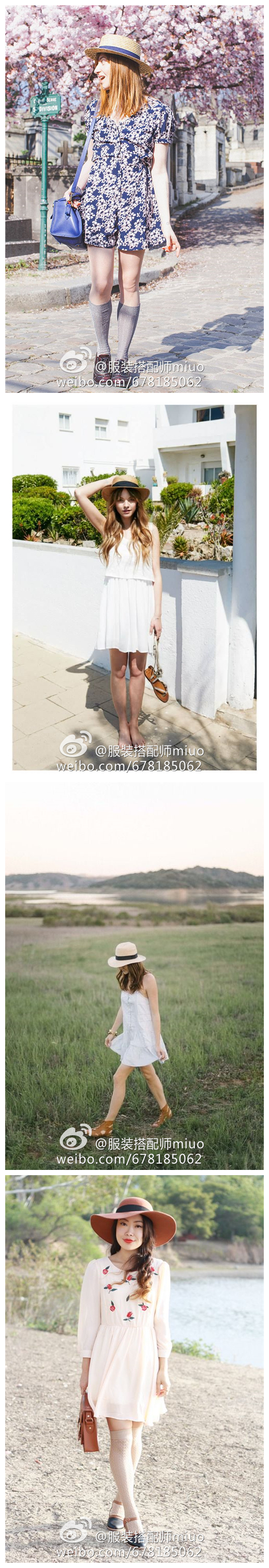 春夏季出行,可以配一个小草帽。收腰连衣裙+平底鞋(或高跟鞋+短袜)+小草帽,复古文艺感立刻就出来了。而且还很减龄(当然发型和淡妆不可少)