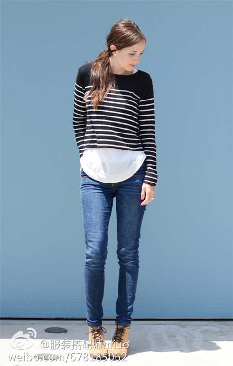 条纹T恤也是衣橱里必备的基础款,它除了百搭外,还有个好处,就是很减龄!