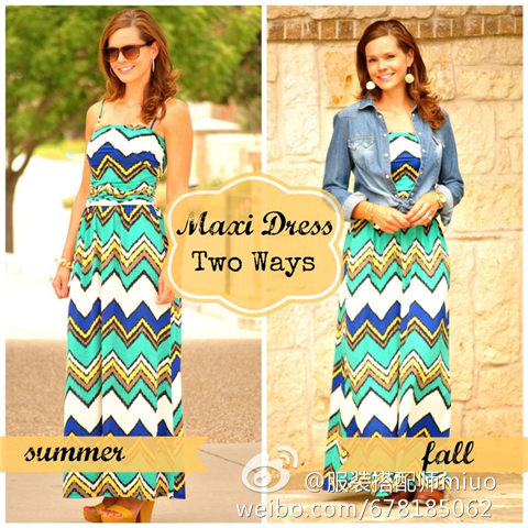 夏季大家都喜欢的雪纺长裙,天热的时候可以单穿,天凉了只要外面加件牛仔外套就可以了。