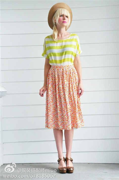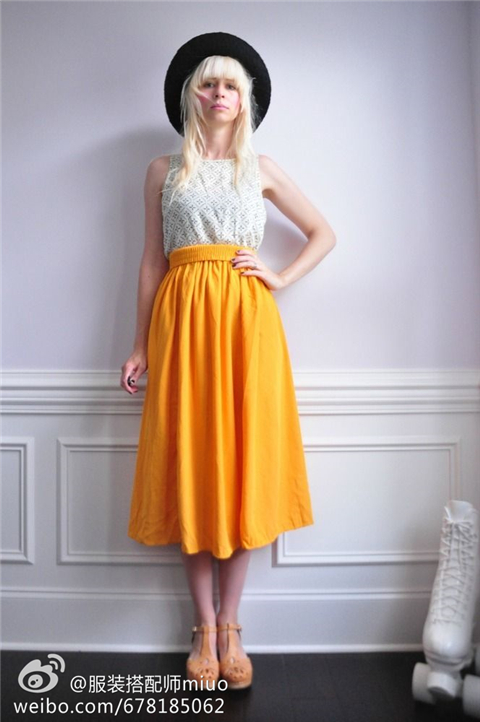 其实你想要搭配出复古风格,非常简单,只需要一件基础款T恤或衬衫或背心,然后穿一条A字中裙或长裙,把上衣下摆塞进裙子腰头,脚上配双复古风格的鞋子,就很复古很文艺范了。当然发型也要注意下。最好再相应来点配饰。