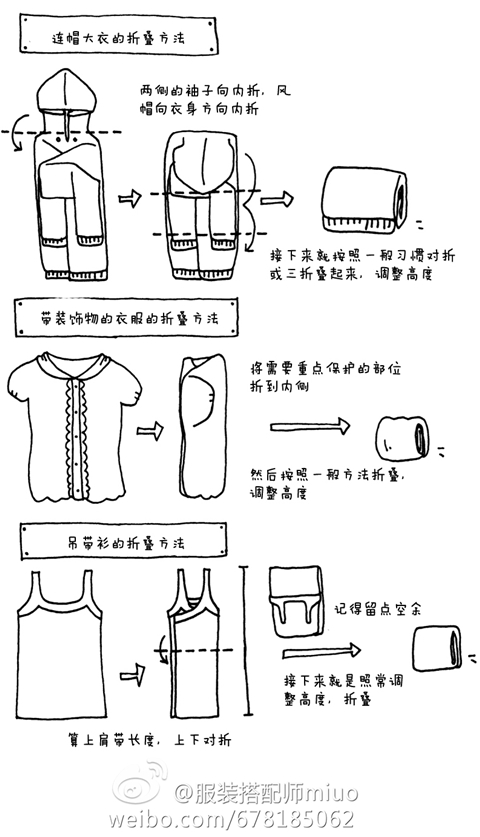 【连帽大衣、带装饰的衣服、吊带衫的折叠法】