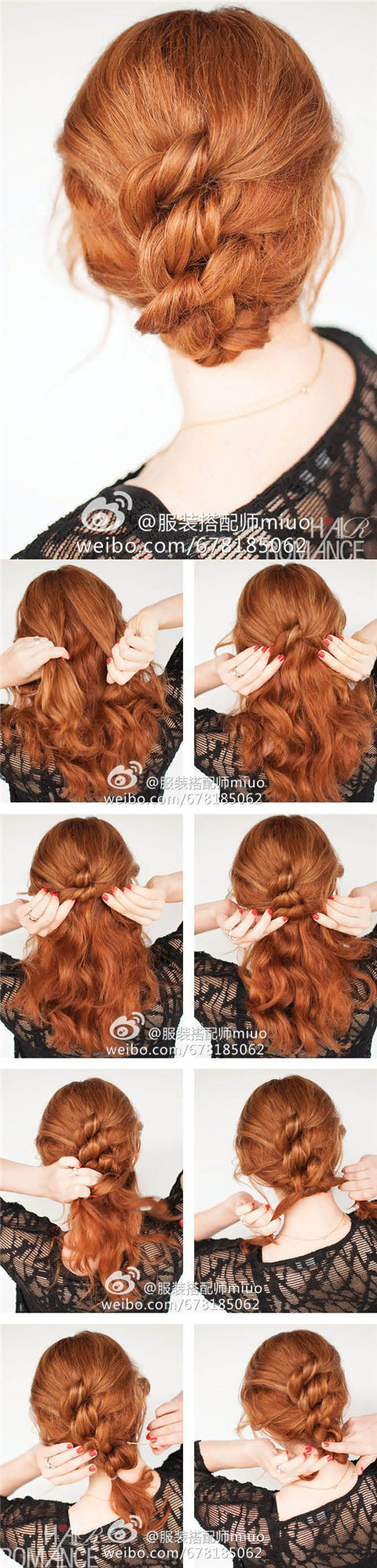 非常精美的一款盘发,不过为了层次感,最上面的几股头发需要用一字夹固定。