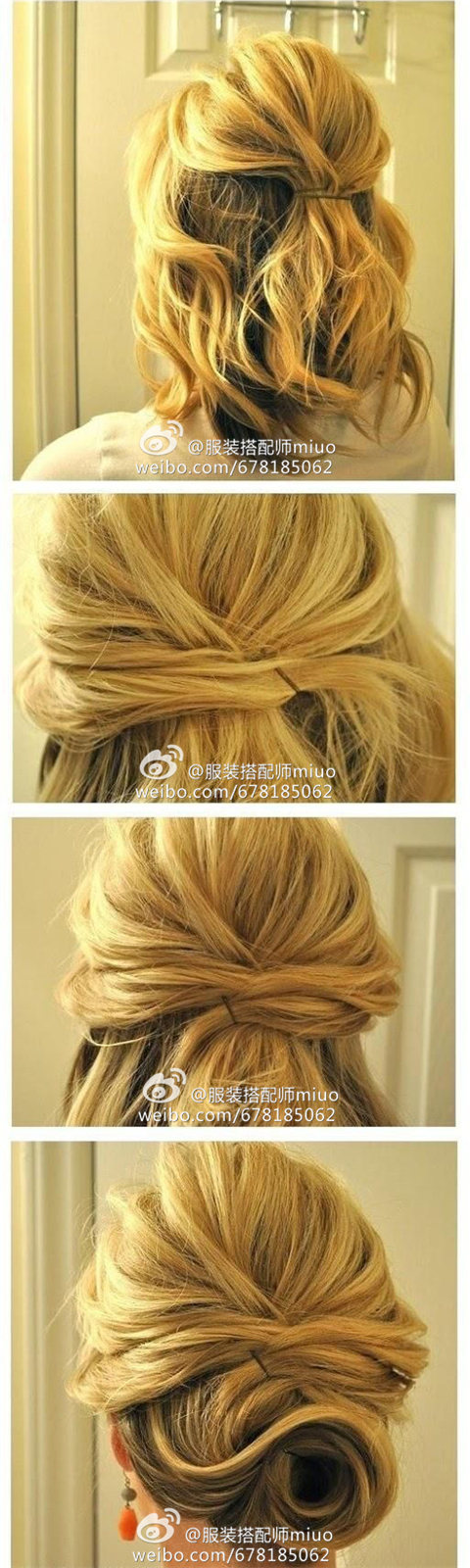 3、【打结式盘发】