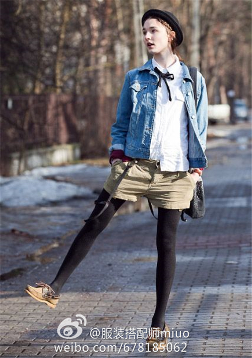 短款的牛仔上衣,可以很好在视觉上分割身体比例,让下半身看起来修长!