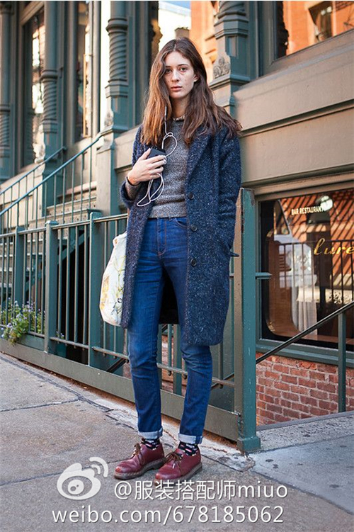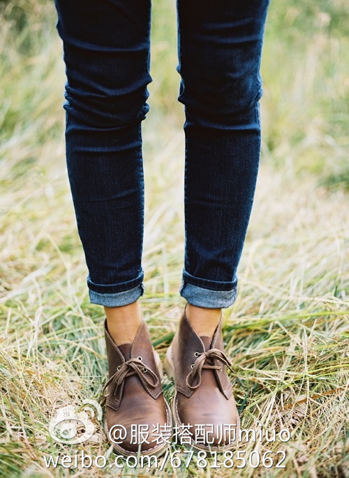 另外,如果小脚牛仔裤搭配高帮鞋的话,你可以尝试配上好看的袜子。细节总能令人很心动。