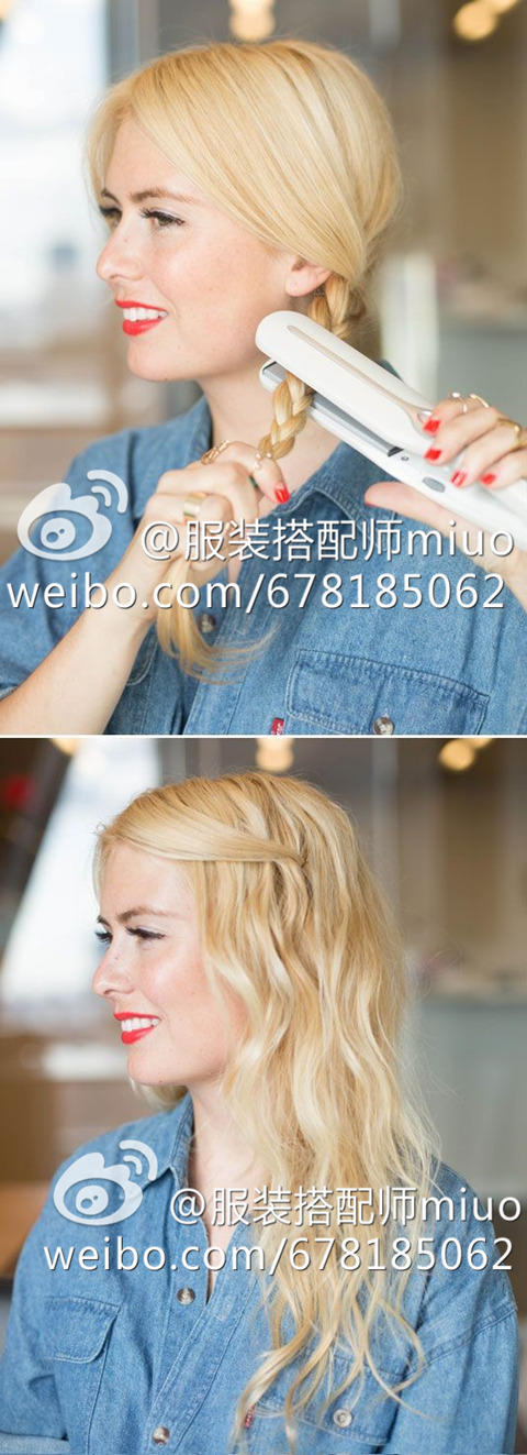 如果你觉得上面的那招太复杂了,那么你就试试下面这款吧!只要把头发编成麻花,然后用
