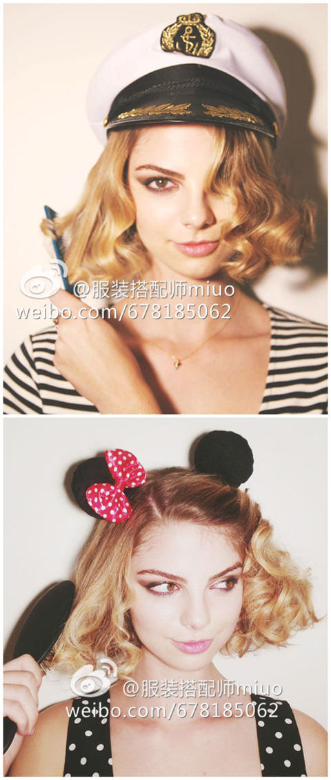 虽然这款的模特是欧美人,但实际上这款发型很韩式哦。头顶上的头发蓬起一撮,能让脸显小、无形间还显高。具体的看教程吧。建议可以先把头发弄卷。至于如何在家DIY卷发,可以看第六第七款教程。