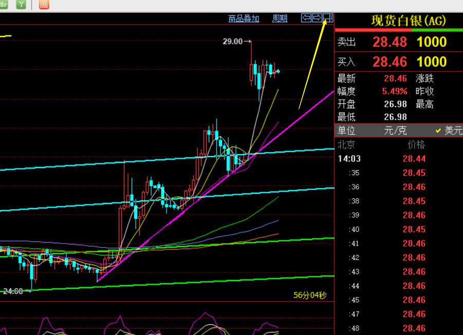 第四,作为白银,上周启动了单边走强上涨,强调要重点介入操作它的做多跟随,上周五白盘依托26支撑连阳走强,并未测试25.7凌晨低点做多机会,其实从日线级别顶底角度看,26支撑也符合上涨;同样,亚欧盘的不断拉升,美盘后回测也要布局一次跟多,给出26.7狙击做多,它是处于日内的顶底转换点,也是依托小时线中轨支撑逢低去多,今日开盘大幅跳空高开至28.7,就给了特别的大惊喜,杠杆来白银26.7多到28.7盈利,相当于把握黄金100美金暴利;