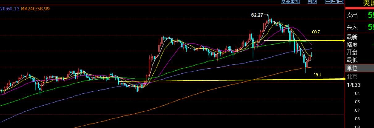 原油方面:昨日依托前一波涨幅回测的618分割支撑布局一次短多,60.6多,反弹抵达61.4短线获利;半夜冲高回落破位60,就意味着短期面临高位的震荡修正,今日早盘先续跌,同样延续性会差,指出58.8和58.1两短期支撑,目前价格支撑有所反弹,也符合判断,上方阻力位同样找618分割压力60.8一线,触及可空;下方支撑58.1,区间内靠边去多空震荡参与;