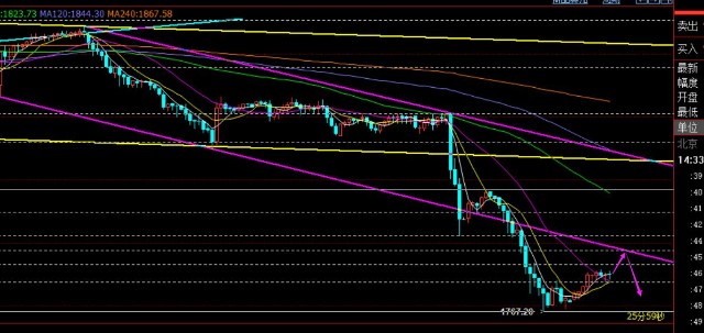 第二,黄金4小时级别,我们知道短期强弱的判断一般可以参考10均线,极弱的行情,一般先压制5均线一路下挫,出现反弹修正也会二次压制10日继续下滑,目前此均线压力在1795一线,也是今日的做空参考点;