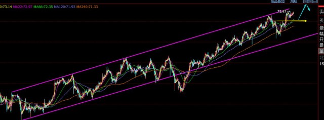 原油方面:昨日保持72.5支撑上方偏强整理,未给到72.2-72顶底短多机会,今日继续关注日线上行通道的上轨压力74.5一线,下方继续关注72-71.7顶底支撑以及618分割支撑,区间运行,高抛低吸,偏强对待;