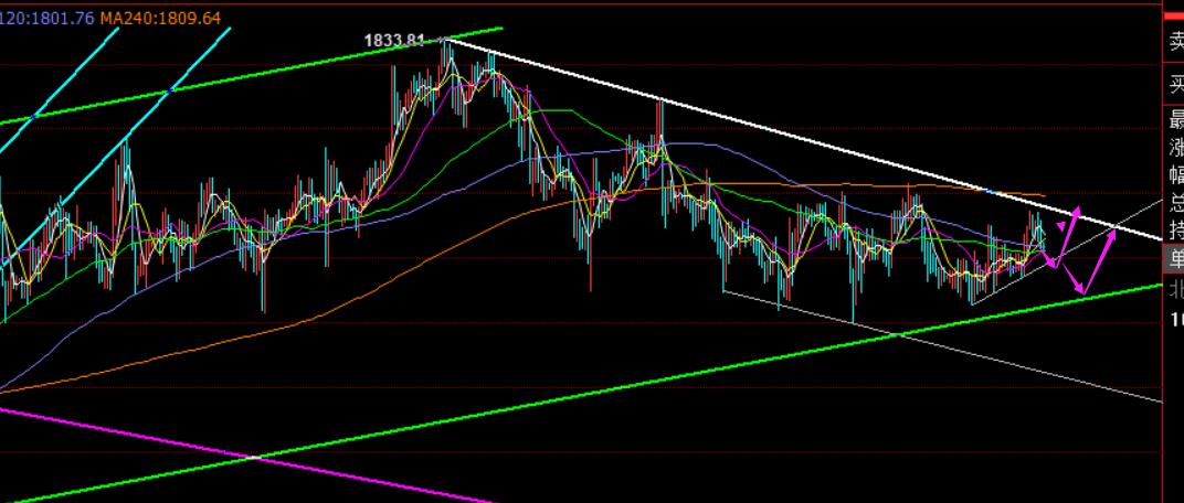 第三,黄金小时线级别,基本上早间都容易形成循环拉升,今日计划1795多,价格给到1797就上去了,而上方1810下仍存在趋势阻力,因此不宜去追多,当前价格保持观望,不上不下;从通道来看,支撑关注1799和1793两处,阻力1809-1810,会议公布前,维持支撑和阻力之间大概率延续震荡,可高抛低吸操作,多单防守1790下,空单防守1815上;另外,一般面对遇到大消息刺激时,日内价格容易产生刺破诱多或诱空假象,若1790被下破,短线关注1780逢低支撑;