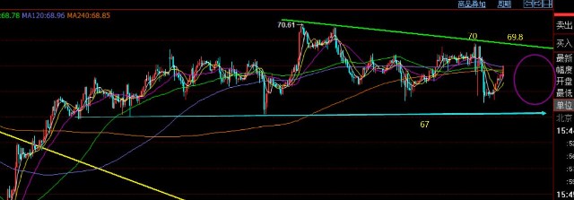 对于今日来讲,隔夜持续走跌,凌晨低位弱势横盘,今日早盘续跌失败,探底拉升,那么日内先走一波修正再看压制回落,参考最后大阴顶端阻力68.7一线,同时也是隔夜跌幅50%分割阻力去布局短空,但此时又遇到了延续性差的问题,大跌后又似乎开始连阳爬升,往上关注69和69.5两个压力点,通道阻力下移至69.8一线,若价格突破69了,建议能回测68.7就考虑调仓出,免得又是上下来回跑,然后晚间69.8下再依托通道阻力去狙击一次空即可;不管如何,原油只要通道阻力一直承压不上,拉高都是尝试高空为主,若上破通道了则举手投降,那么下周就考虑去反手跟多;
