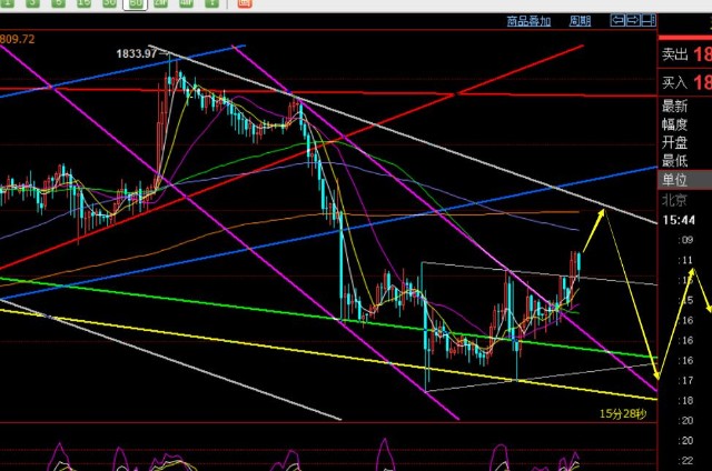 第三,黄金小时线级别,隔夜一直承压于如图的紫色下降通道,高点逐步下移,包括今日早盘10前也是如此,但11点收线出现大阳上攻,有效突破了通道,且破位了1802前两日的双顶压制,不过由于处于震荡期,突破后不宜直接追涨,容易刺破后导致反复的尴尬局面,上方其实短期压力还相对多,半年线1807,年均线1810,深白色趋势阻力点1810-11,这些压力仍相对重,毕竟日线还是处于破位后的压制偏空走势中,因此接下来更多的建议1810下去高空,也可分批空,回看1790及下方,而低位1785-86一线若再次触及出现企稳信号,再考虑低多介入;