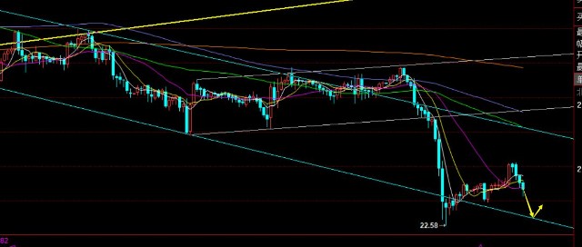 第四,白银方面,但亚盘黄金一路慢涨反弹时,白银处于横盘压制23下方,而黄金开始短线压制下滑了,白银却出现一波拉升突破23冲击了23.1一线,可想而知,白银是跟随黄金脚步,黄金在382分割阻力承压,白银也刚好是这里,今晚23.1下压制看跌,支撑22.65一线,破位则关注22.3;