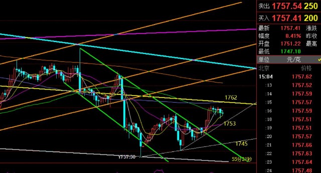操作上:早间9点小时线大阳后,计划回测51先跟多,但不给机会,直接拉升了,此时就建议观望下,看欧盘强弱再定美盘, 阻力1762一线,支撑1754-53一线;倾向于拉高空;