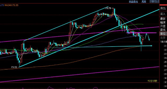目前来看,75一线是暂时出现一定买盘支撑,因为反抽力度也开始加大,半小时底背驰出现,日线若能守住10均线,那么明日就可能会上攻;当前关注75支撑,阻力顶底位置76.5-77承压,区间先运行对待,稳健还是继续多观望下,倾向于反弹短空;