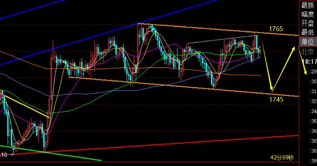 操作上:黄金1765下短空为主,目标1750-1745;抵达再反手低多为主,继续区间反复震荡对待;
