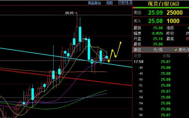 第二,白银方面,24.8逢低指出看涨上行,也得到了一波顺利拉升至25.35一线;