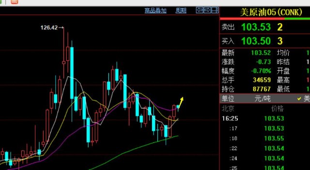原油方面,昨日延续前一日的上涨反弹,且是逼空拉升,因为中途都未出现像样的回调,属于一根筋走法,也是符合原油独特的性子;日线级别,突破有所站上中轨103,今日成为支撑看能否再崛起一波上攻;对于短期信号不利的则是,短周期macd有所顶背驰出现,原油要继续大幅拉升暂时难度也大,需借消息面来强行刺激;但有一点别忘了,原油喜欢走震荡抗跌逼空路线,越是不断出背驰,它就越不跌,一路慢慢磨破高,操作上维持低多看反弹上攻为主; 支撑就是103及下方多,102.3作为小的防守,阻力105-106,突破看108;(WTI 05合约报价)