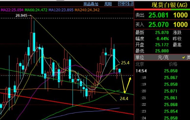 第二,白银方面,昨日提出阻力25.4下看压制,短期支撑24.8,价格也基本在此区间内整理;