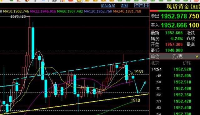 操作上,黄金此时空仓的,可以稳健1960及上空,或者1931及下多,卡两边震荡操作; 或者等破位1950支撑后,激进的择机反弹跟空,看1944-40得失;