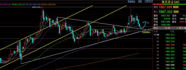 小时线级别,昨日承压1878下滑,今日欧盘支撑1860反弹至1872,从通道角度看,1878可以是短线压制的一道坎,未突破站上前,不急于偏高位置去跟多,相对好的买盘区域,也就是再诱空一波至1850,甚至逼近1840-38处,再反手布局抄底计划;