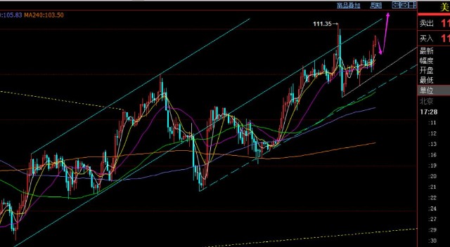 原油方面,这几日原油判断思路和方向都基本符合,震荡偏强拉升为主,日线突破前期缩口三角整理后,选择上攻,结合周线和月线中长期多头不变,认为短期存在一波持续拉升,但过程是震荡氏偏强运行为主,途中会时刻出现类似昨晚的高位跳水,然后再逐步上行修复去继续破新高;早盘建议是107.7上继续多,欧盘只给到108.1,差一点,此时拉升逼近111一线,美盘要跟多,得提前干多,关注109上逢低多,看11.7,站稳看114-116;