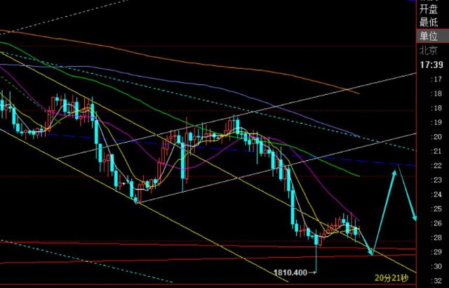 操作上:黄金1818-15触及短多试探,防守1810,目标1829的破位,看1834-36; 1840下反手压制高空,1844上作为防守,看1829下回落震荡;