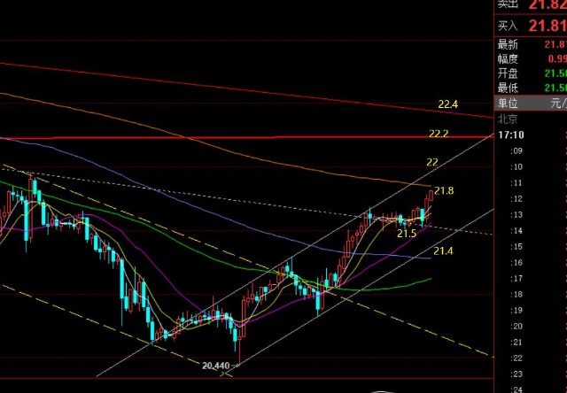 白银方面,日线10均线压力下移21.75一线,看收盘价格能否有效站上,决定是否提前走出弱势格局;小时线级别,隔夜持续连阳拉升,今日高位横盘后,此时又开始连阳破高上涨,走势依旧比黄金略强,则21.5可以作为日内一定风水岭对待,其次短期上行通道下轨支撑上移21.4,因此短线守住21.4-21.5支撑点,将继续反弹上攻修正,上方阻力21.8、22、22.2、22.4都有各自的通道压力;而纸白银操作者,继续持有手中分批买入的多单,持仓至6月中旬后看表现;