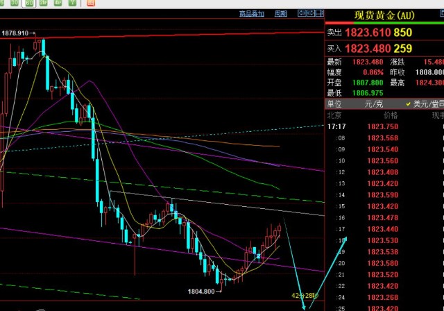 第一,黄金方面:昨日早盘先快速续跌一波,则容易延续性差而反抽一波,欧盘试探了凌晨阻力点1833下,未突破站上则展开一波回踩,由于亚盘反抽20美金力度偏大,整体欧盘下跌也失守不了隔夜低点1810,因此判断美盘为1810上方震荡对待,存在日内高点再次试探概率,继续反复不延续运行,依托618分割支撑1818继续短多试探,然而触及反弹力度并不大,继续震荡慢跌,那么此多单就需要提前调仓,并下方埋伏一个1800下一个通道支撑回踩做多,可惜并未触及;