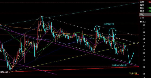 白银方面:日线级别走势比黄金弱,已经试探了前面20.8启动点,再往下就是20.4,从macd角度看,一旦跌破20.4会酝酿底背弛而有所支撑反弹,总体上应该还是区间内整理,只是有所下压;22一线成为近期一道坎,冲破了才能扩大上涨反弹力度;反之,就维持底部偏压制整理对待;日内短线关注21.3、21.5-21.6压力,支撑20.8、20.4;