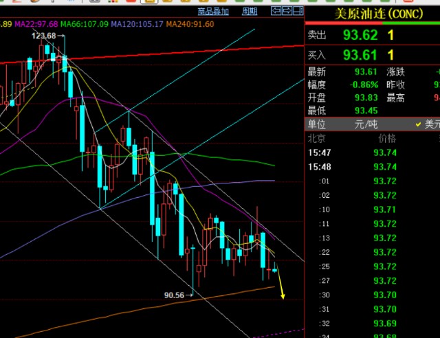原油方面:日线收报阳十字K,算继续循环阴阳走法,那么今日收阴就是大概率,而短期仍处于下降通道内,继续反弹空为主,波段持空等待; 隔夜压制96.45冲高回测,按照分割角度和通道反压共振,95.3-95.5依然有压力,此位置下继续空,支撑92.4,一旦失守则试探前低90.5,而周线通道下轨支撑还有些远,在82-83位置;