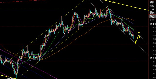 黄金方面:日线连阴下滑,失守中轨支撑,当前也有所击穿前期1752-53震荡逼空启动点位置,那么短线还有进一步下滑空间,先关注1744一线,属于1680-1808回踩50分割点,而618分割点是1729一线,中轨和5均线1762-64成为反压,以此作为压制点继续先高空;另外,从小时线下跌通道和macd背离状态来看,也要谨防1740上触及下轨出现超跌反弹修正;今日属于开盘就阴跌慢跌走法,不反弹的情况下,不好追空,但同时当前也未试探关键支撑点,不宜提前多;