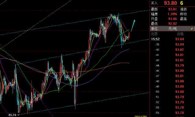 原油方面:昨日指出两个方面,若是按背离抗跌来走,94是支撑; 若是按背离修复来走,会继续试探93下;从日线通道角度,短期跌势已经结束,转为上涨格局,这个上涨也先是按修正来对待,由于前期从123.6高位一路跌下来,即便反抽50分割105或618分割阻力109来看,上方都有千点空间,因此这几日还是值得尝试波段的;