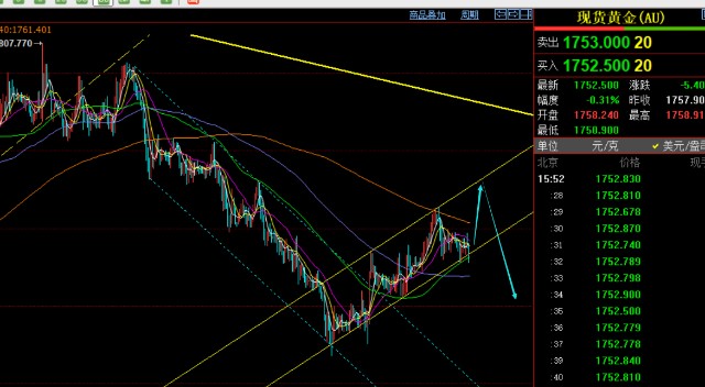 黄金操作思路上:1752支撑看反弹,阻力看1760-65,强压1773上方准备高空;