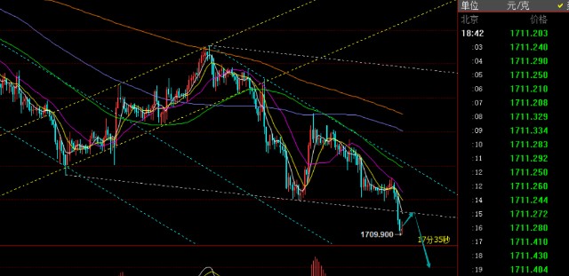 黄金操作思路上: 1716及上方弱势做空,1690及下博超跌反弹;