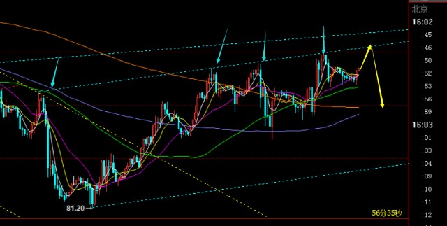 原油方面:昨日继续以高位震荡逼空摸高来对待,反复测试关键趋势阻力位,周二试探89.5,隔夜试探90,都是趋势线上,而今日有所上移至90.3,此位置仍继续高空对待,并且价格拉高,配合小时线macd酝酿背离,容易再度冲高回测,短期支撑88位置比较明显,也是凌晨低点,这里破位了,才能延续走弱;从日线循环角度看,仍认为会有一次试探83及下方底部的迹象,周线方面也暗示会围绕通道下轨线上下不断串,类似四五月份走势;