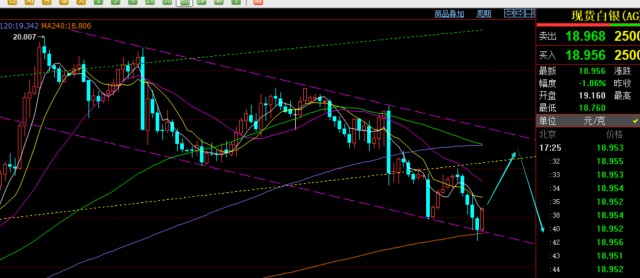 第二,白银方面:昨日给几位学员提示,日线通道压制20一线,这里未突破站上前,短期拐点会走空,结束前几日的反弹,因此欧盘当时19.5就可以直接空它,若上去分批加仓,看19及下方到位;