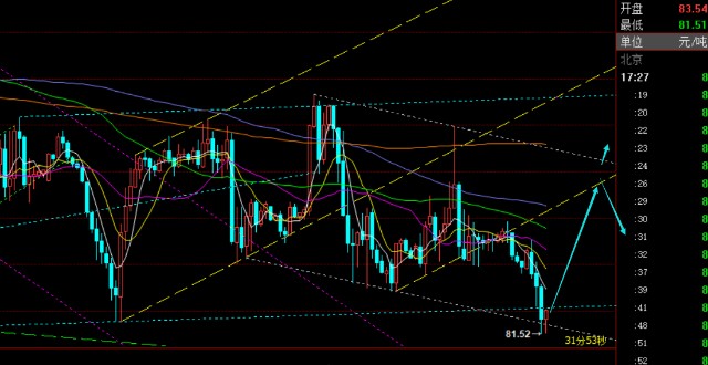 原油思路上: 暂时不建议追空,虽短趋势也是空头,但周线级别还是认为会宽幅整理,要以最终形态来确认,可依托81.5上方逢低试探短多,若能重新回归83上方,则意味着大概率企稳,进而会逐步回踩修正上行,甚至破日内高点;