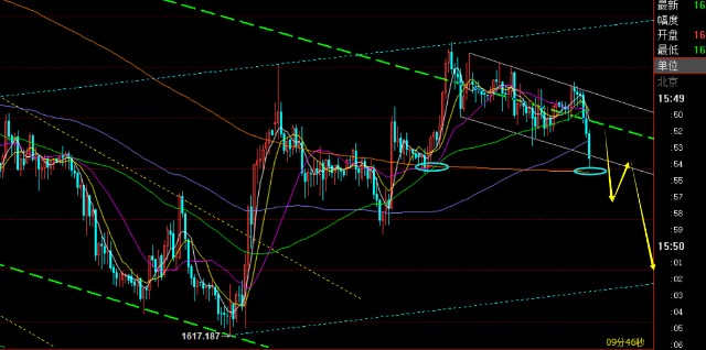 第一,黄金日线级别:自上周五大阳出现后,短期弱势下跌格局转为震荡上行修正,一般修正的时间周期为三至四个交易日,当前时间拐点临近,随时变盘;另外,从均线系统看,中轨压力始终无法被突破站上,几日拿不下,就意味着容易被反补;重点是留意10均线,一旦收盘于下方,则修正终结,回归短趋势空头发力,1617-1614也就很难挡得住;建议继续坚持高空为主思路不变;