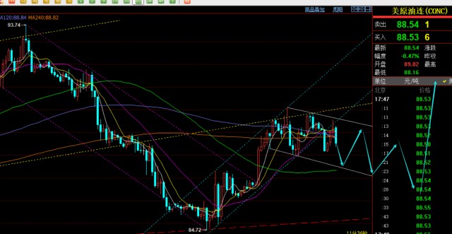 原油思路上:当前89.5作为下滑通道的上轨阻力点,未突破站上前,先看一波承压下跌,目标支撑87.5-87.3;87上企稳再考虑反手;
