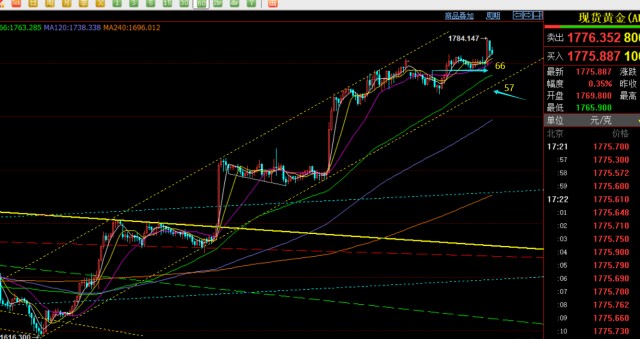 郑氏点银:黄金牛气延续逼空,1766上移成为风水岭