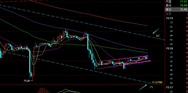 原油方面:原本作为波动率一直较大的品种,这两天也萎靡了,卡在100点内持续整理;从小周期看,也是有所缓慢上行通道在走,慢慢刷新高进行一定反弹需求;从日线形态看,还是偏弱,反弹力度并不够,要出一根中阳或大阳,才能回归两线之间的宽幅震荡,否则短期仍有进一步走低风险;不过从小时线级别看,多头动能是在平缓放量,关注78-77.9中轨,守住它,继续保持缓慢的反弹;若阴线失守了,则又可能走弱了;相对好的压力位是81一线,相对好的支撑位是75一线,大区间是关注这两者之间;