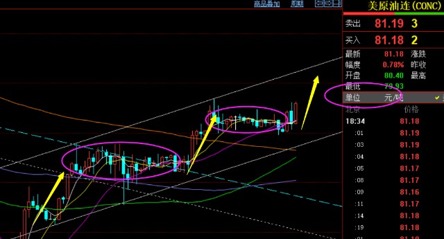 今日而言,按短期上行通道来走,79.4下轨上方都是建议看涨上行,而横盘不破80,则会进一步的推高,然后再横盘,再推高的走法不断演绎;一旦站上81.3昨日高点大阳有效,则回测可接着看涨即可,阻力今晚先关注82.5下;