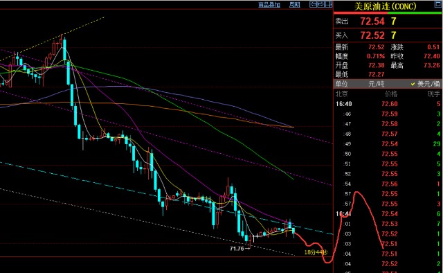 原油方面:日线四连阴,算是近期抛售打压力度较大的,短周期也严重处于背离状态,但每日都给不到好的修正阻力点,比如周初的80一线,前两天等76上也并未给到,昨晚算是差一些,高点是75.4;而今日提及的阻力是4小时10均线73.5,但价格也是差点未触及;当无法触及预期埋伏点后,价格下去了,也就不好追跌,毕竟macd持续背离状态存在,也要谨防突袭拉升修正;当前继续关注73.5下,未突破前,维持弱势下跌格局,下方支撑关注71.4-71;若欧盘期间突破73.5走高,则会有一定修正反弹,届时留意昨日高点75.4得失情况;作为日线形态来讲,连阴后,希望的是出阳,那样第二日会有好的高的压制点,然后继续看月线支撑68一线;